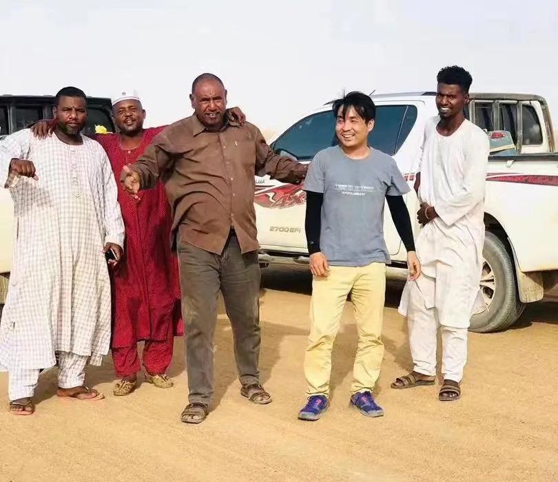 岳远志(右二)在苏丹与当地朋友合影。受访者供图